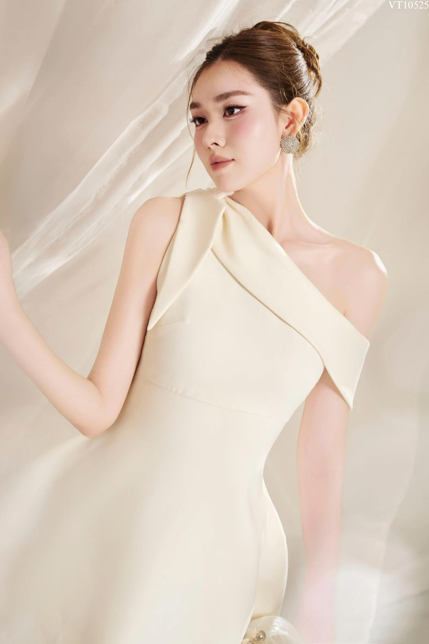 Đầm trắng trễ vai dự tiệc thiết kế đơn giản, hiện đại #3173