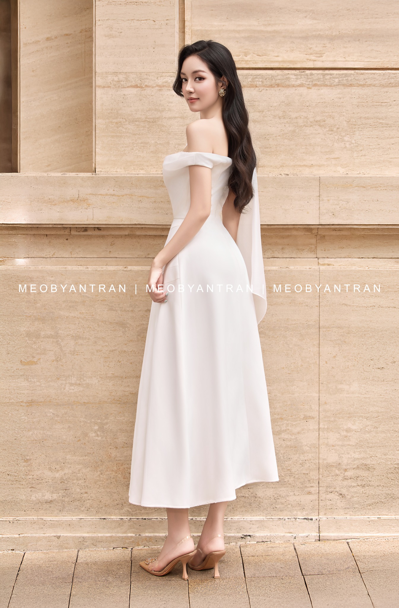 Đầm trắng trễ vai dự tiệc thiết kế đơn giản, hiện đại #3173